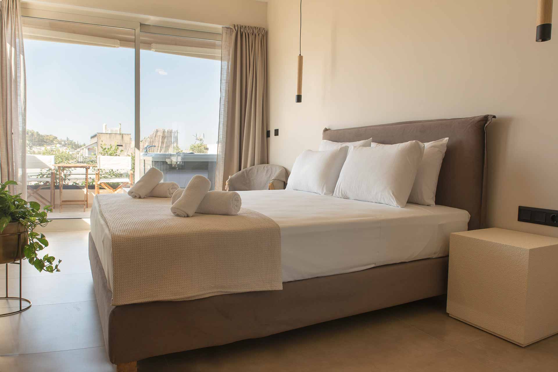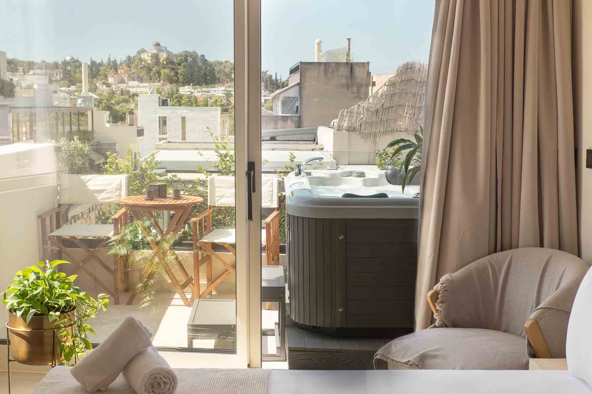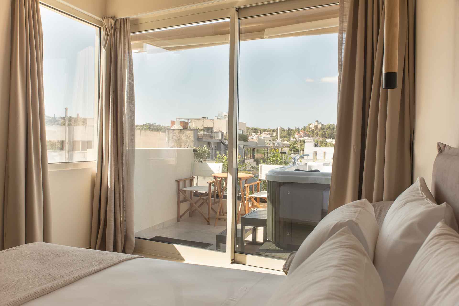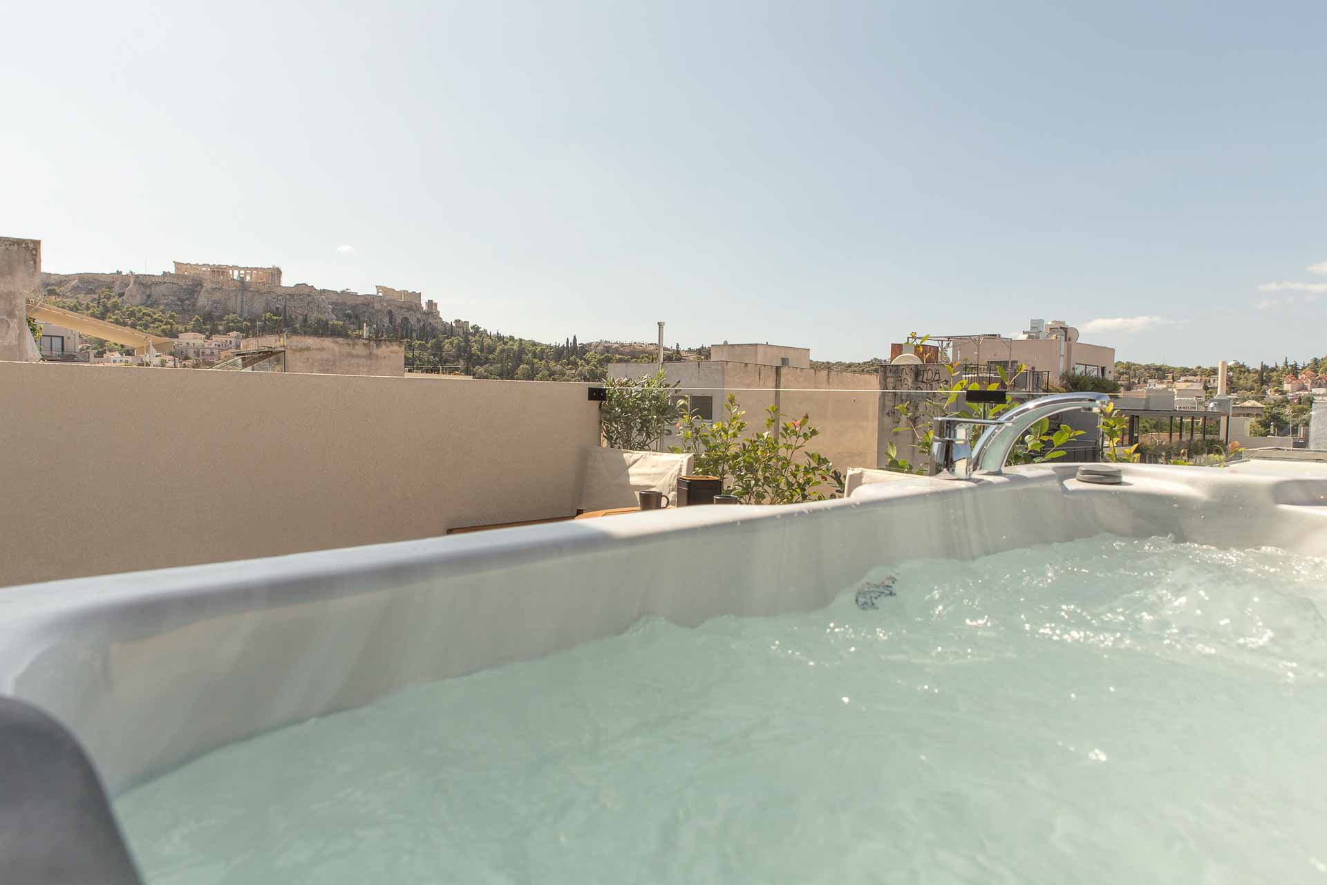 Luxury 30 sq. m. room in the center of Psyri, Athens. Having a private entrance, and amazing private Acropolis view huge 40 sqm Terrace with Jacuzzi and Amazing Acropolis view.